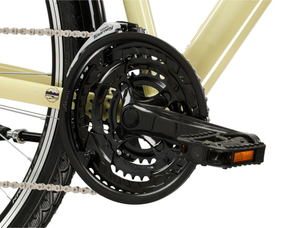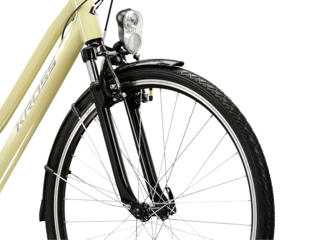 Dámské Trekingové Kolo Kross Trans 1.0 28" 19" L béžová/fialová lesk 2025. Hliníkový rám, Shimano Tourney, vidlice KROSS (TRAVEL 30MM), převody 3x7, modelový ROK 2025
