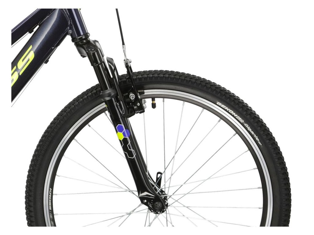 Dětské Kolo Kross Hexagon JR 1.0 24" tmavě modrá/žlutá lesk. Hliníkový rám, Shimano Tourney, vidlice KROSS (TRAVEL 50MM), převody 1x8, modelový ROK 2025.