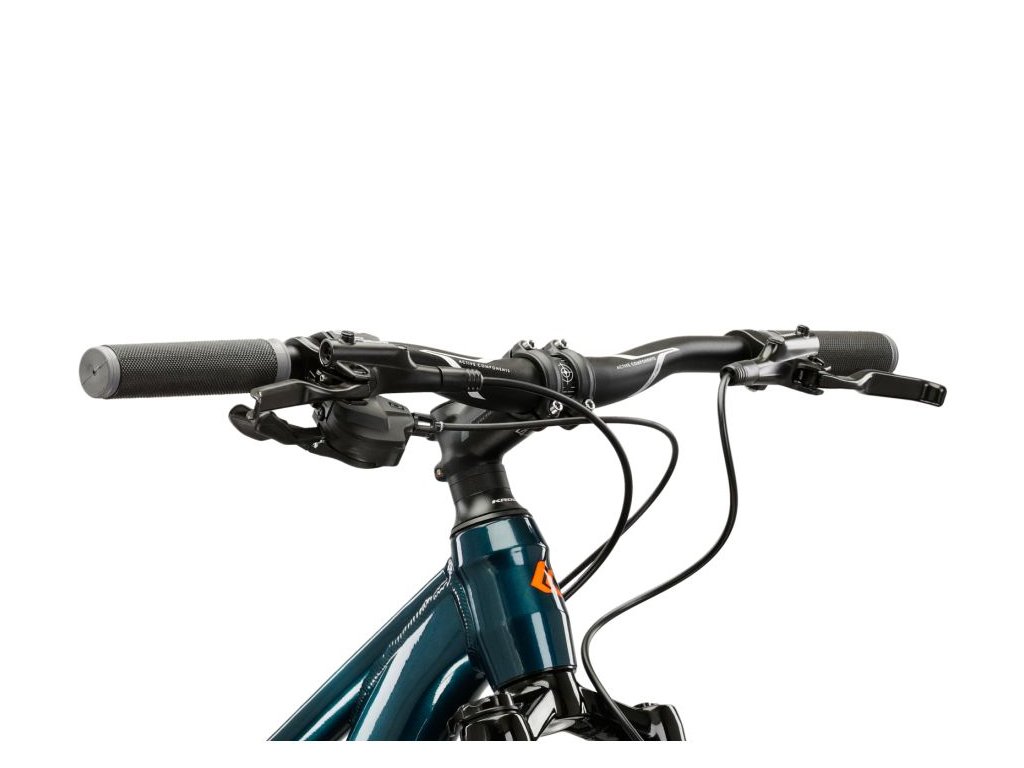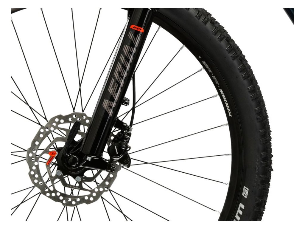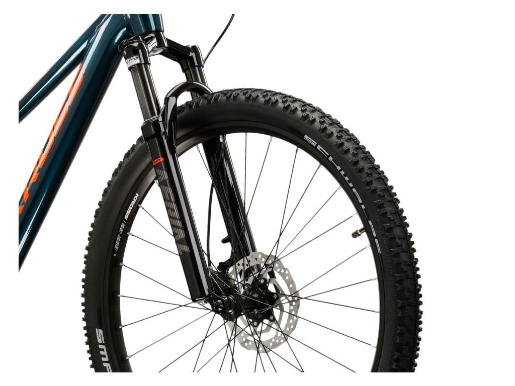 Dětské Kolo Kross LEVEL JR 5.0 26" modrá/černá/oranžová. Hliníkový rám performance, Shimano DEORE, vzduchová vidlice RST AERIAL AIR 80mm, hydraulické kotoučové brzdy Shimano, převody 1x10, modelový ROK 2025