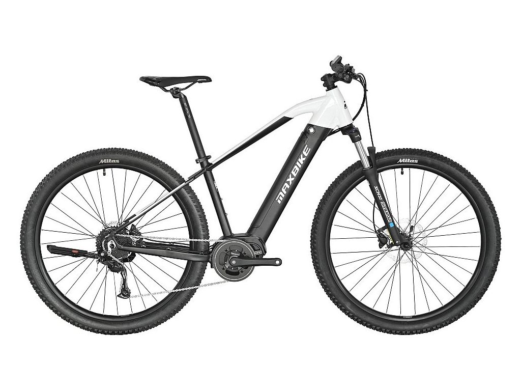 Elektrokolo MAXBIKE FRODE 504Wh 29" L 19" rám černá / bílá lesk. Vidlice Suntour XCM HLO 29" disc 100MM, motor Bafang M200 250W 65Nm, baterie BAK 14Ah, 504Wh.Dojezd až 90km. 2024