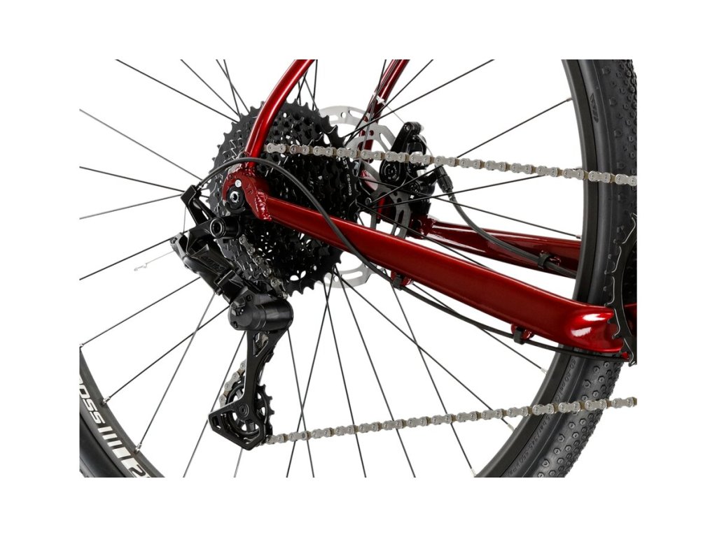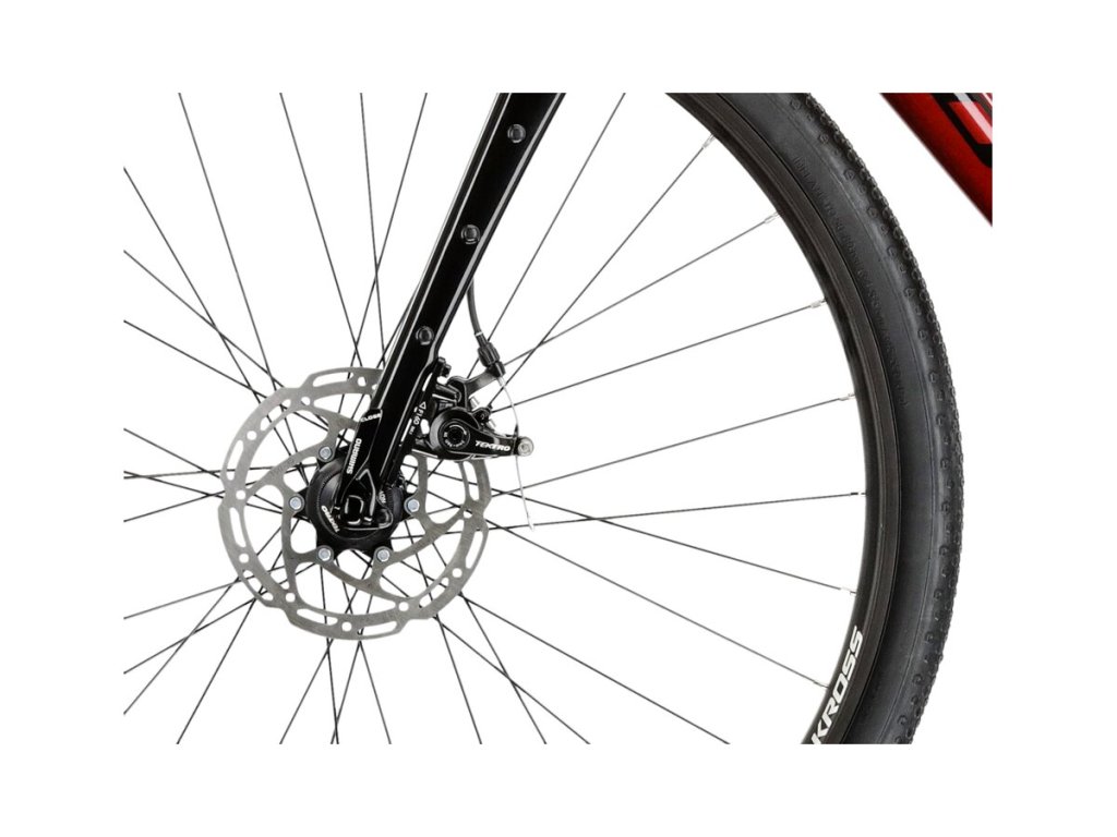 Gravel kolo Kross Esker 2.0 L/20" červená/černá 2023. Hliníkový rám, komponenty MICROSHIFT ADVENT X M6205, kotoučové brzdy TEKTRO, WTB, 1x10, pevné osy, rok 2023.