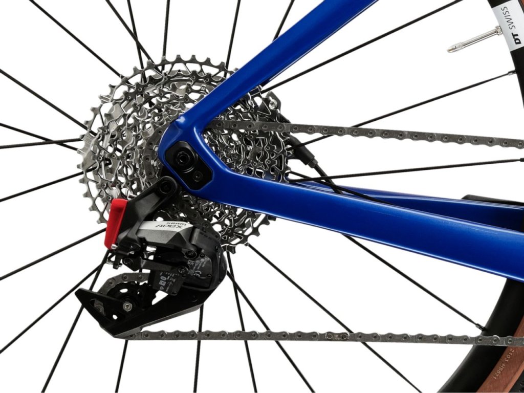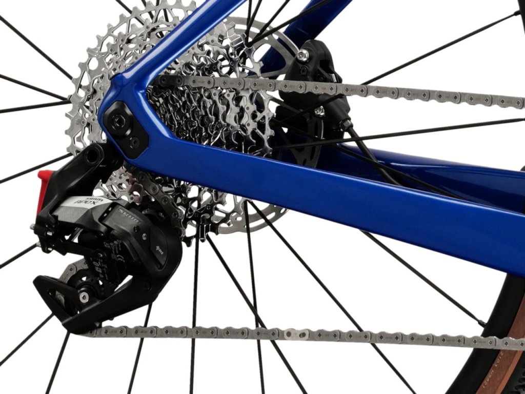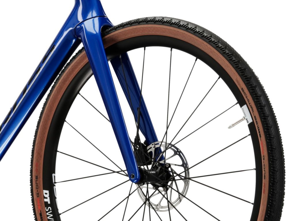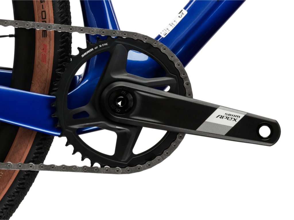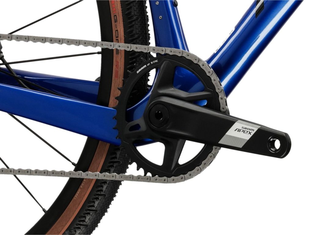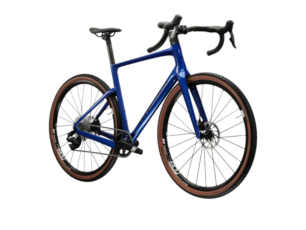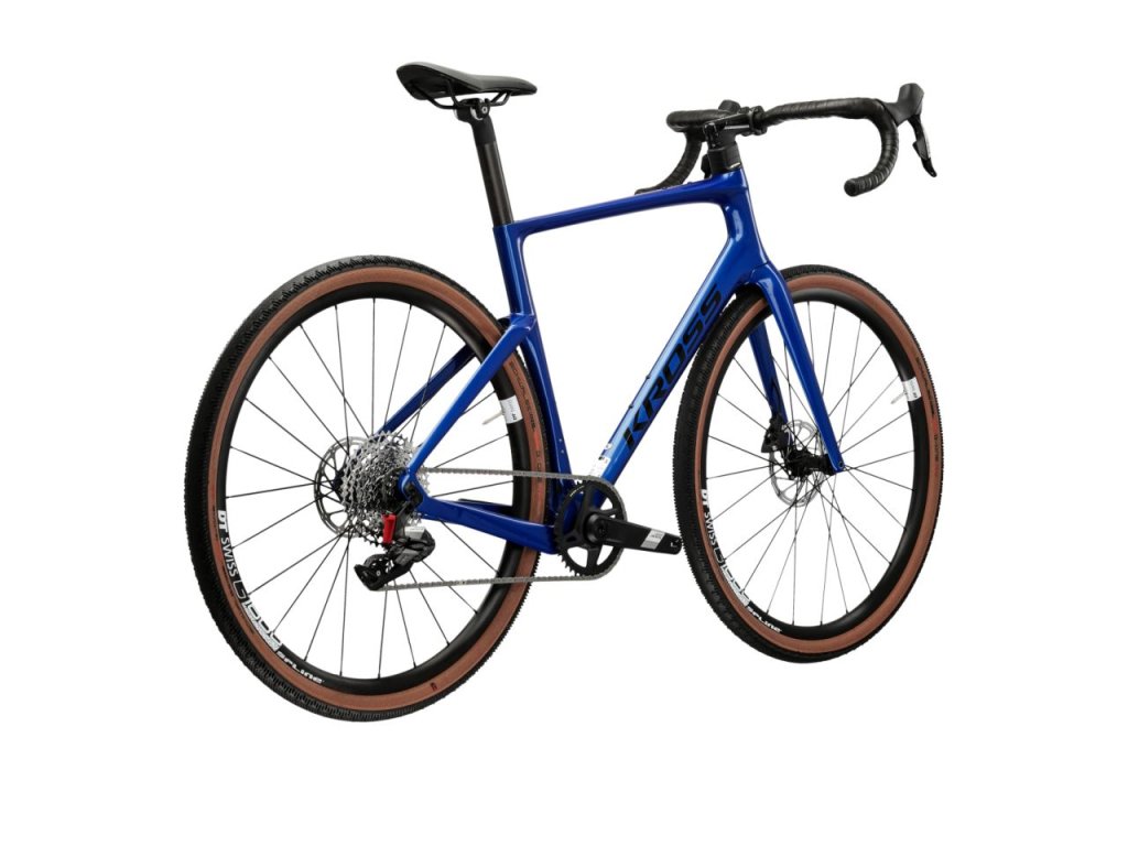 Gravel kolo Kross Esker 2.0 RS M/19" modrá/černá lesk 2024. Karbonový rám s karbonovou vidlicí, komponenty SRAM APEX XPLR AXS, hydraulické kotoučové brzdy SRAM APEX, doplňky FIZIK TERRA ARGO X5, rok 2024.