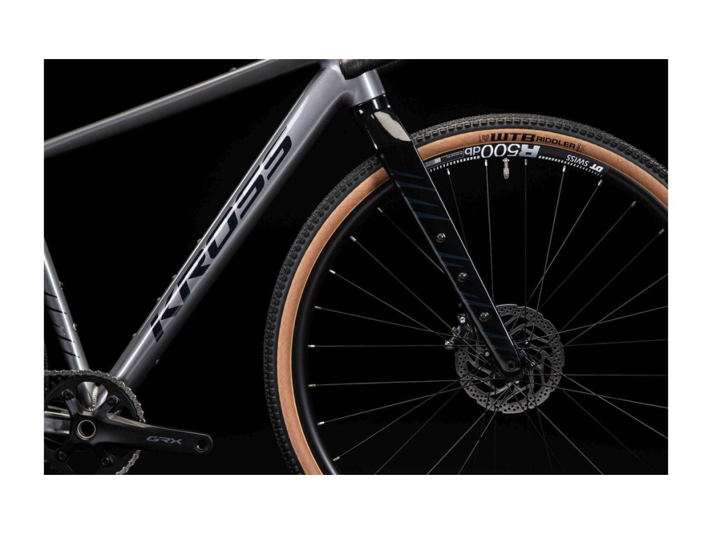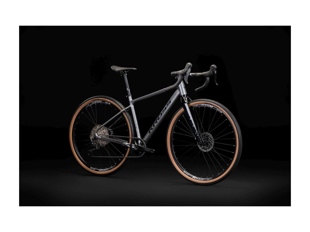 Gravel kolo Kross Esker 5.0 XL/21" šedá / černá lesk 2025 druhé generace! Hliníkový rám s karbonovou vidlicí, komponenty SHIMANO GRX822, kotoučové brzdy SHIMANO GRX RX410, SHIMANO RT30 (160), DT SWISS R500, WTB, 1x12 rok 2025.