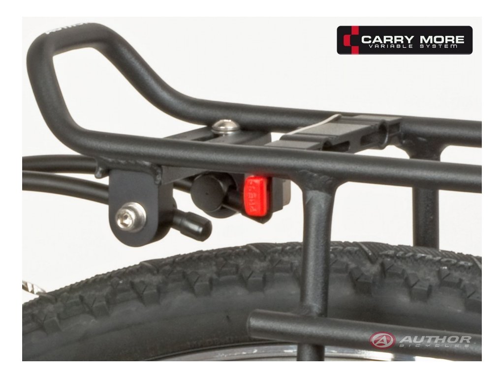 Nosič AUTHOR ACR-65-Alu s velmi tuhou konstrukcí. Rychloupínací systém CARRY MORE zaručuje snadné a rychlé upevnění příslušenství na horní plochu nosiče. Universální nastavitelné uchycení nosiče na rám jízdního kola. Integrovaná boční trubička umožňuje nižší uchycení postranních brašen a zvětšuje tak horní ložnou plochu nosiče. Rychloupínací systém CARRY MORE je kompatibilní se všemi brašnami a košem z řady AUTHOR CARRY MORE. Rovně můžete připevnit většinu ostatních brašen na nosiče