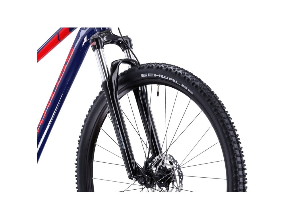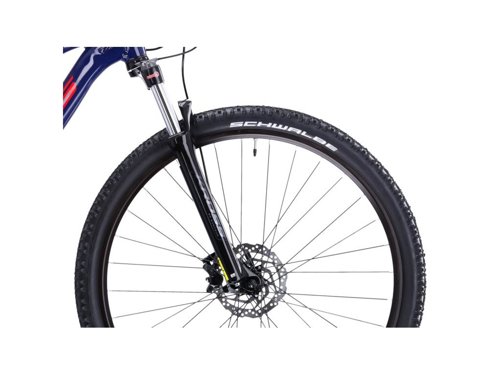 Horské Kolo LEVEL 2.0 29" XL 22" rám SR námořní modrá / červená lesk. Hliníkový rám, Shimano Deore, hydraulické brzdy JAK-Y2, vidlice SR SUNTOUR XCM RL (travel 100mm, remote lockout), převody 2x9, modelový ROK 2023.